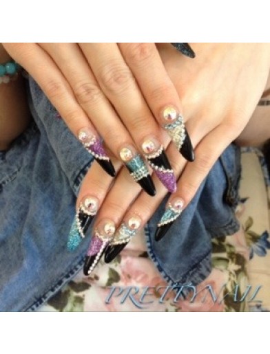 ブルー パープルラメ 黒のデザインフレンチスカルプ 池袋のネイルサロン ネイルスクール Prettynail プリティーネイル