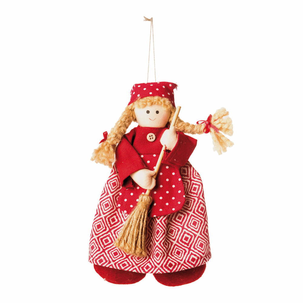 Boneco Com Saia Decorada Avental Poa E Touca Decorada Segurando Vassoura 1 Un Cromus Mundo 25