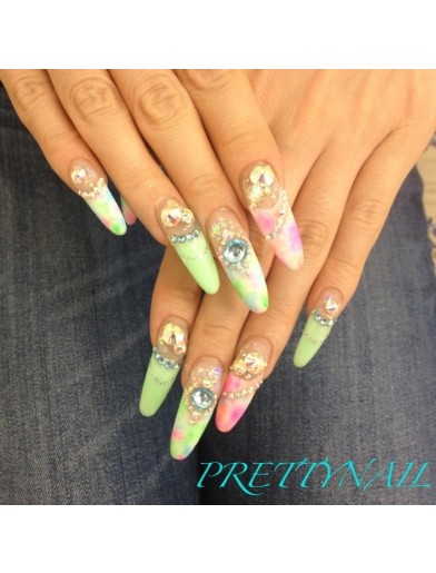 オールシーズン グラデーション ビジュー グリーン ネオンカラー Barber226 Nailのネイルデザイン No ネイルブック